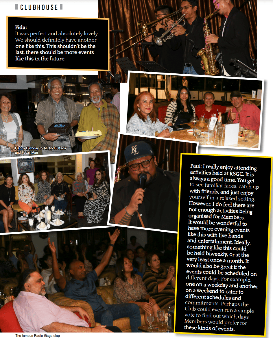 The Green was packed with many Members bringing guests to enjoy the show. Everyone mingled in a relaxed setting while enjoying complimentary free flow drinks and popcorn, creating a casual and cheerful atmosphere as everyone settled in before the show began. This final edition of Live At The Green began with a warm welcome by CPRESC Convenor Yasmin Yusuff. She introduced the members of the CPRESC and the MarComm department staff who attended in full strength and gave a brief round-up of the SubCommittee’s portfolio and achievements over the last 3 years.