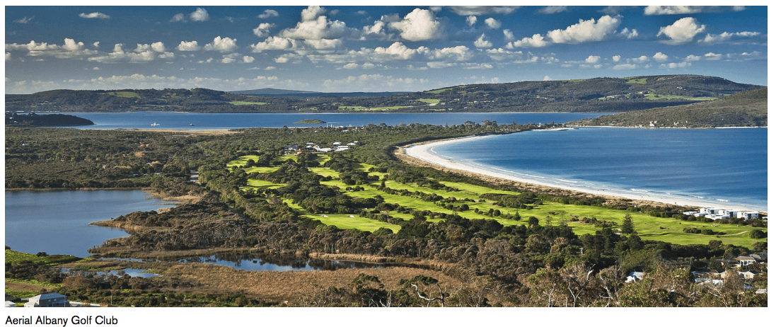 Travelling with two golf buddies, we flew into Perth on AirAsia X (although these flights are now being handled by AirAsia) and spent a few days there before setting off to the southwest on a journey of discovery with a twist. We knew of Australia’s great outdoors, open Aerial Albany Golf Club spaces, and natural places, and that Western Australia was one of the most sparsely populated parts of the world, so we thought it would be an adventure to explore this part of Australia using a recreational vehicle.