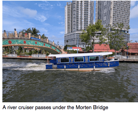 The village is fronted by the winding Melaka River, a onceimportant trade route that’s now better known for leisurely cruises and evening strolls. Boats still pass regularly, offering glimpses of Kampung Morten that contrast sharply with the notably more tourist-heavy stretches downstream. Here, the view is quieter and more authentically lived-in – traditional houses, clotheslines, and the occasional resident tending to potted plants by the water’s edge. The riverside path is a pleasant place to walk, certainly in the cooler morning hours, but also especially around sunset, when the village lights come on and the animated chatter from visiting neighbours carries across the river. Our own leisurely visit took place in the midmorning, and we found it one of the standout delights of the entire trip.