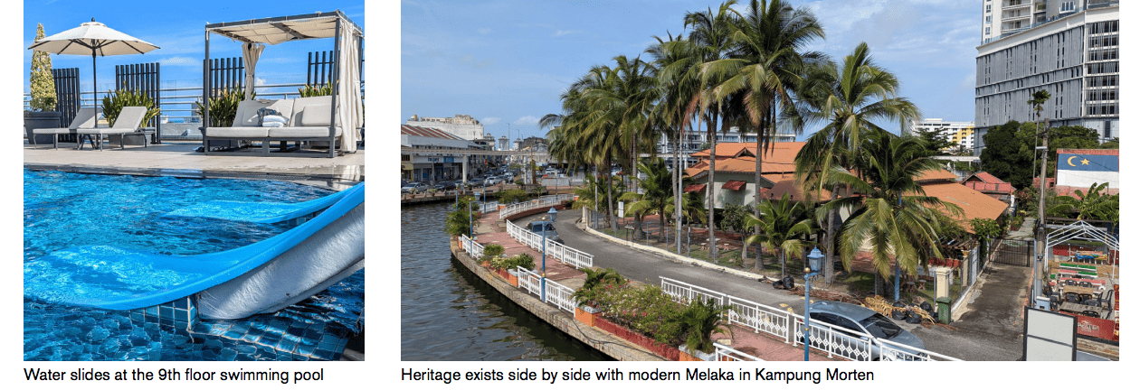 The staff are keen to blend Thailand’s legendary hospitality with Melaka’s rich heritage, so don’t be surprised to get the occasional “Sawasdee ka” greeting here! The hotel is already making a name for itself in Melaka’s hospitality market, too, with attractive rates, excellent service, and a long list of upscale offerings, including spacious rooms, onsite restaurants, a well-appointed gym, a welcoming lobby lounge and bar, a lovely club lounge, and what is surely one of the best hotel pools to be found in Malaysia.