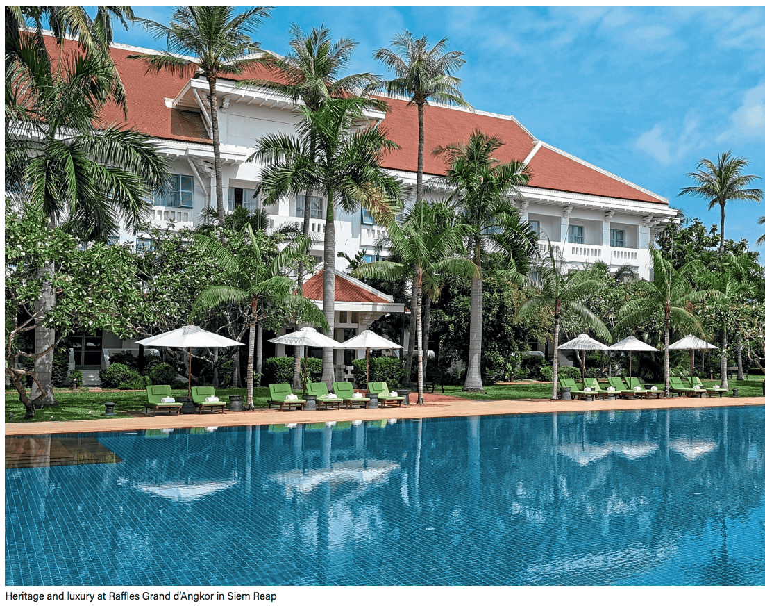Raffles Grand Hotel d’Angkor provides timeless elegance across its 119 rooms, suites, and villas, located within 15 acres of landscaped gardens just 8 km from Angkor Wat and directly opposite the Royal Palace. Its location strikes the perfect balance: close enough for quick temple visits, yet secluded enough to feel like your own colonial retreat. The hotel’s wellness offerings stand out — the Raffles Spa weaves ancestral Khmer healing traditions with contemporary luxury across six treatment rooms, plus steam rooms, saunas, yoga sessions, and a stunning 35-meter pool inspired by the royal baths of Angkor. Elegant restaurants, the iconic Elephant Bar, and top-tier service round out an experience that’s grand but never imposing. Having first opened in 1932, the hotel still retains its timeless elegance today, offering travellers a luxurious stay that feels both authentically Cambodian and effortlessly refined. (https://www. raffles.com/siem-reap)