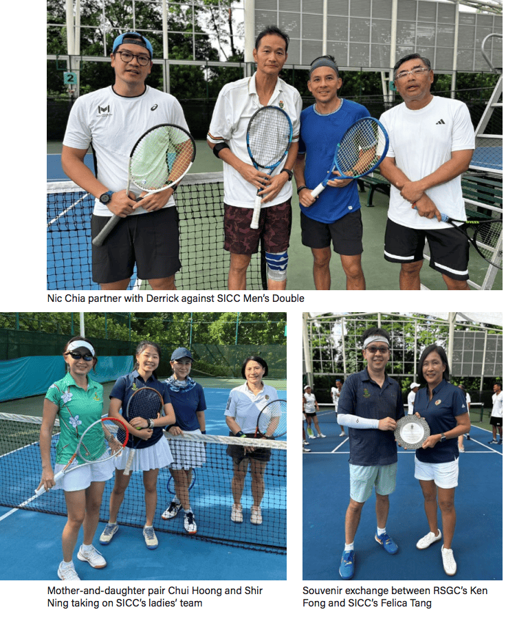 This programme fostered camaraderie and strengthened the bond between the two clubs. Traditionally centred around golf, such encounters now highlight tennis as a growing avenue for interclub engagement, with hopes that more sports will follow. RSGC extends its appreciation to SICC for graciously hosting the event and looks forward to welcoming them at RSGC next year once upgrading works on the sports facilities are completed.