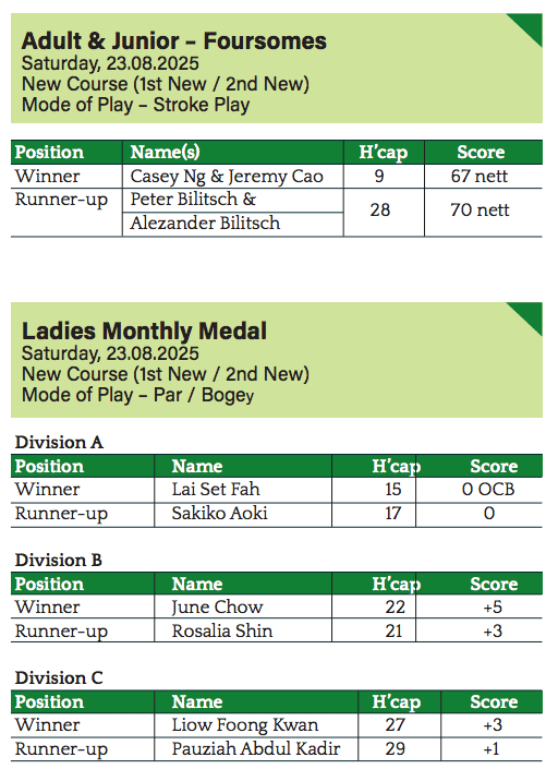 Golf Results