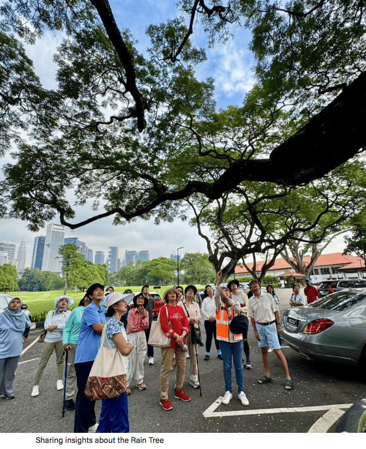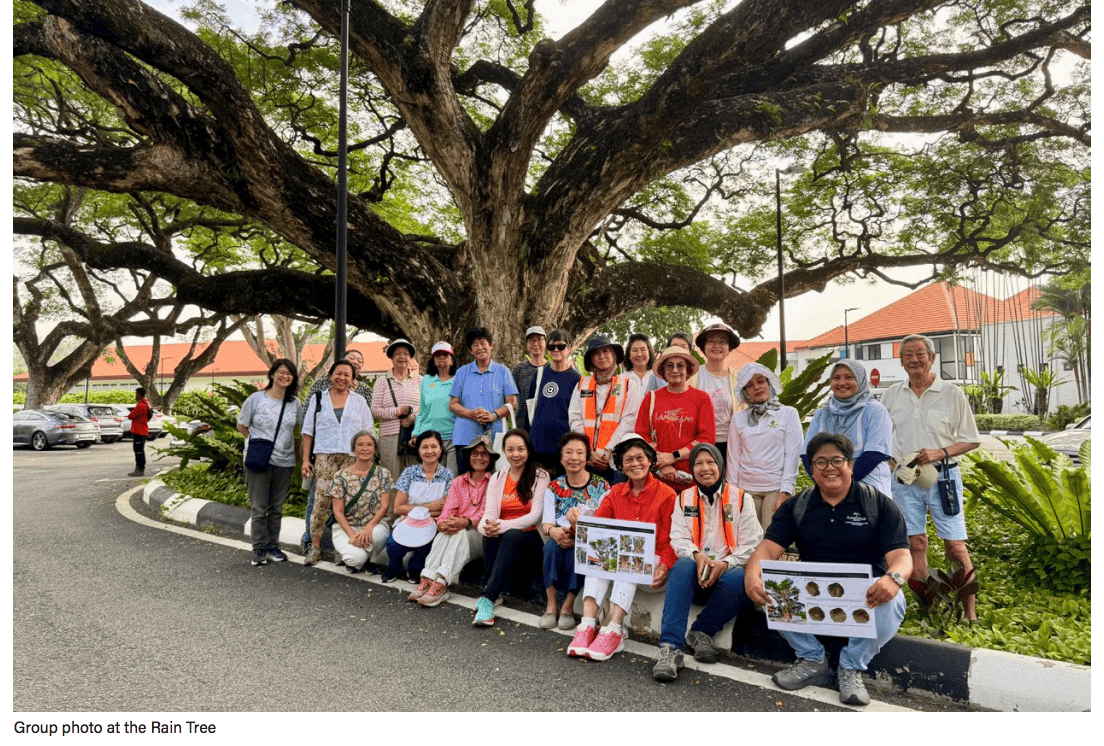 Members expressed their hope that the tree would continue standing for future generations, as it is part of the Club’s heritage. They also visited the legendary Rain Tree, admired for its magnificent canopy, and learned that propping works would soon be carried out. A group photo was taken with the Rain Tree as the background.