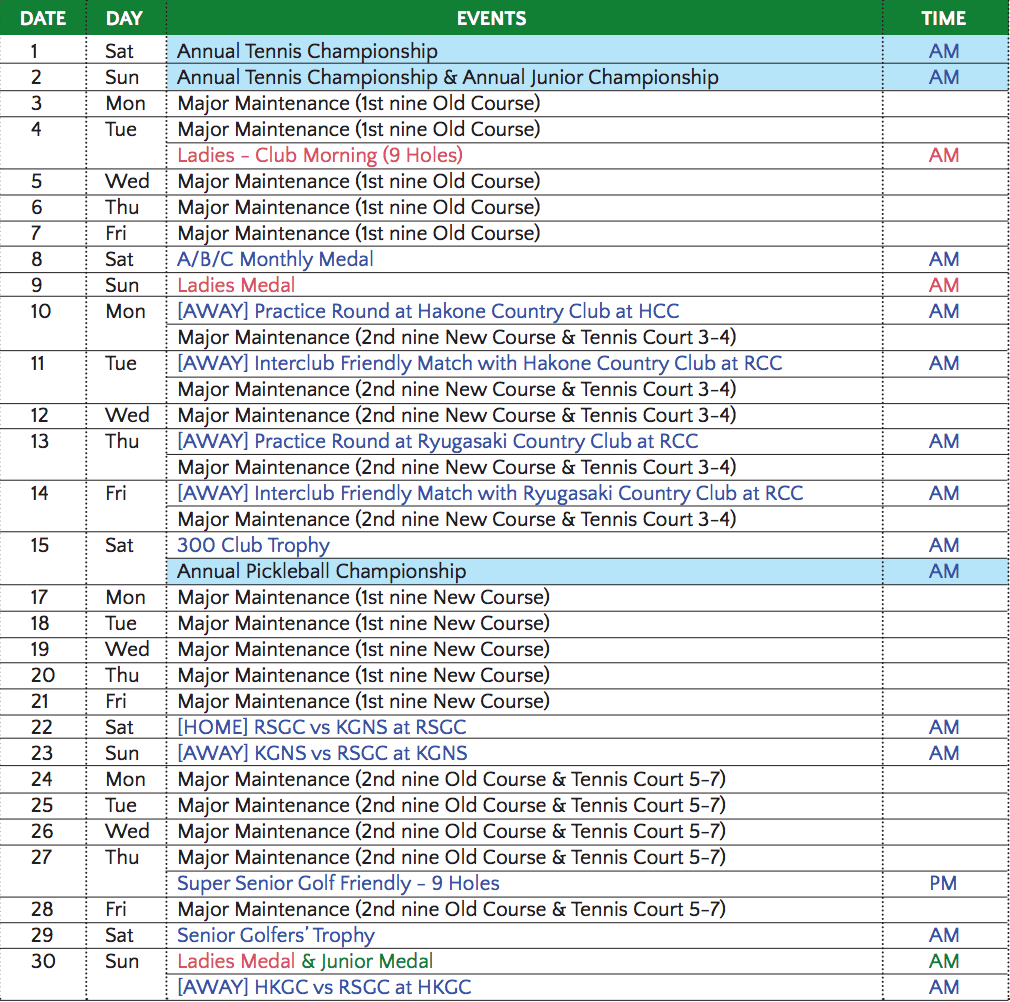 Monthly Fixtures