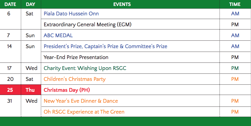 Monthly Fixtures