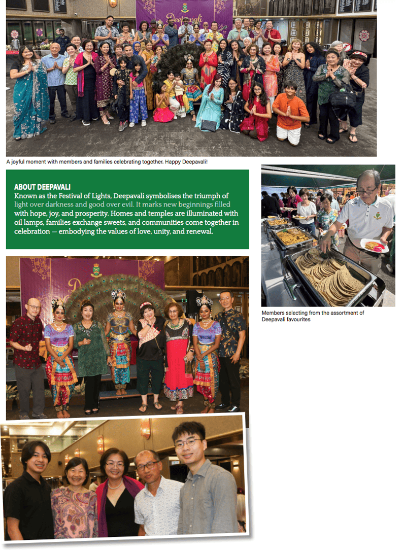 The evening offered not only a feast for the senses but also a reminder of the Club’s cherished tradition of celebrating Malaysia’s diverse cultures. The Deepavali Open House 2025 once again reflected the Club’s commitment to fostering unity, appreciation, and joy among its members and their families.