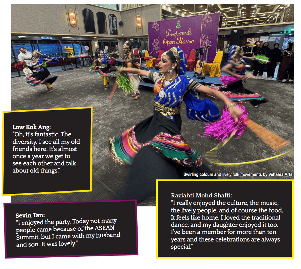 The cultural segment of the evening featured Vehaara Arts, a distinguished dance company based in Puchong, known for their mastery of Indian classical forms such as Bharatanatyam and Odissi, as well as contemporary interpretations. Performing four captivating sets throughout the night, Vehaara Arts showcased the elegance, precision, and vibrancy of traditional Indian dance — each piece accompanied by their own specially selected music to enhance the festive atmosphere.