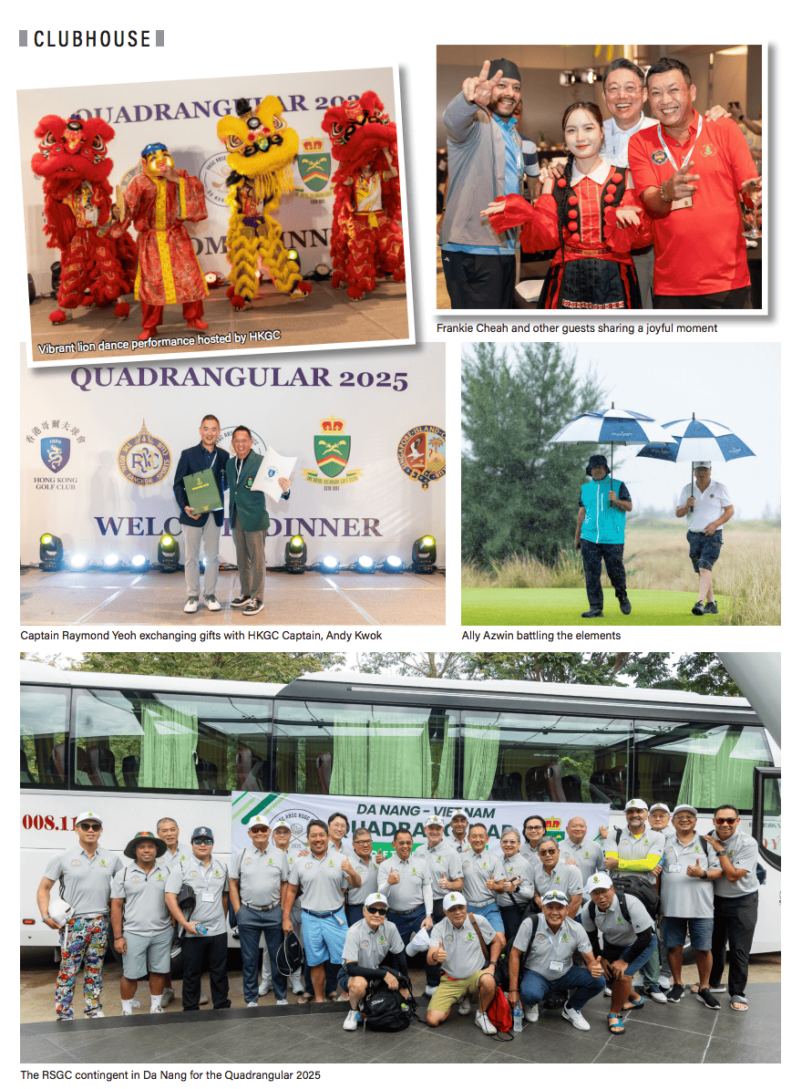 “My first Quadrangular was filled with fun, laughter, great team spirit, and strong camaraderie among both RSGC and reciprocal members. The event was very well organised — from course selection to transportation and logistics. An unbelievable experience and I look forward to returning in two years’ time.” — Chew Cheong Kin