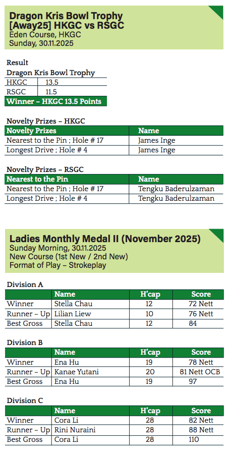 Golf Results
