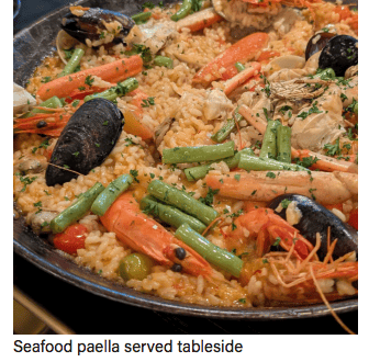 The meal begins with a tempting list of made-to-order plates, quite a few prepared in the restaurant’s Mibrasa charcoal oven. The Angus striploin sets a confident tone, served with hand-cut fries, asparagus, and a classic Béarnaise. It is joined by plates that show a bit more flair, such as the fish curry tacos with coconut reduction and garlic. This dish was excellent, though we’d never characterize it as a “taco” – more of a tostada if anything. High points for creativity and local flair, though!